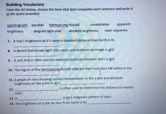 Overview stars and galaxies worksheet answers