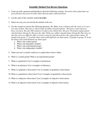 Scientific method questions worksheet