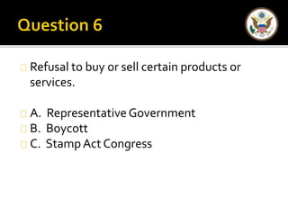 Chapter 2 Section 2: The Coming of Independence - Quizlet Plan proposed by Benjamin Franklin in 1754 that aimed to unite the thirteen colonies for trade, military, and other purposes; the plan was turned down by the colonies and the Crown. Delegate Representatives from each of the thirteen colonies. Boycott Refusal to buy or sell certain products or services. Repealed Recall. Popular Sovereignty
