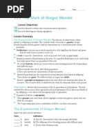 Lesson 11.1 Handout (1).doc - Name Class Date 11.1 The Work of Gregor ... Name Class Date 11.1 The Work of Gregor Mendel Lesson Objectives Describe Mendel's studies and conclusions about inheritance. Describe what happens during segregation. Lesson Summary The Experiments of Gregor Mendel The delivery of characteristics from parents to offspring is heredity. The scientific study of heredity is genetics.Gregor Mendel founded modern genetics with his experiments on ...