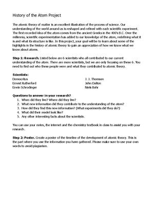 Atomic Theory Worksheet.docx - Name:_ Period:_ Atomic... Name:_____ Period:_____ Atomic Theory Worksheet: Historical Development of the Modern Model of the Atom Use the notes on TEAMS and the Chemistry Textbook to help you answer the following questions in your notebook! Turn in your assignment when you are finished! Draw below the model of the atom proposed be the following individuals: Democritus (400 BC) Thompson (1897) Rutherford (1900) Bohr ...