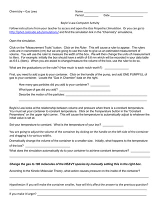 Student Exploration Gizmo- Boyle's Law and Charles' Law - Marcus ... Student Exploration: Boyle's Law and Charles' Law FROM LAUNCHPAD, go to to access the Gizmo! Prior Knowledge Question (Do this BEFORE using the Gizmo.) A small helium tank measures about two feet (60 cm) high. Yet it can fill over 50 balloons!