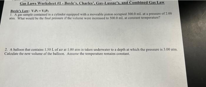 ️Boyle's Law Worksheet Answers Free Download| Qstion.co Boyle's Law Worksheet Answer Key Convert 50.0°c to 323 k and 25.0°c to 298 k. When the pressure on a gas in a closed container is increased, its volume is decreased. Save Image *Click "Save Image" to View FULL IMAGE Free Download Charles Law Problems Worksheet Answers My Worksheet