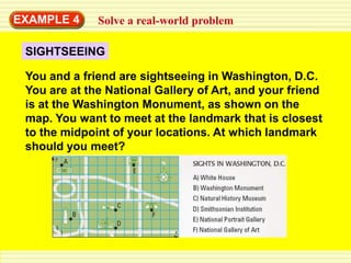 PDF Grade 9 Distance and Midpoint - Arizona Department of Education 1. Determine both formally and informally how to find the midpoint between two points. Problems include finding the midpoint given both endpoints, and finding the unknown endpoint given the midpoint and one endpoint. Session 2: Distance (4 days) 1. Illustrate the connection between the distance formula and the Pythagorean Theorem. 2. Determine ...
