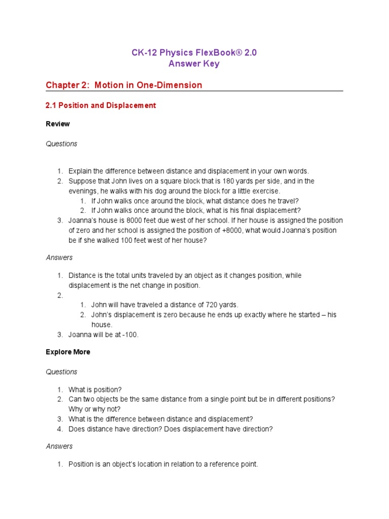 Motion in one dimension problem a worksheet answers