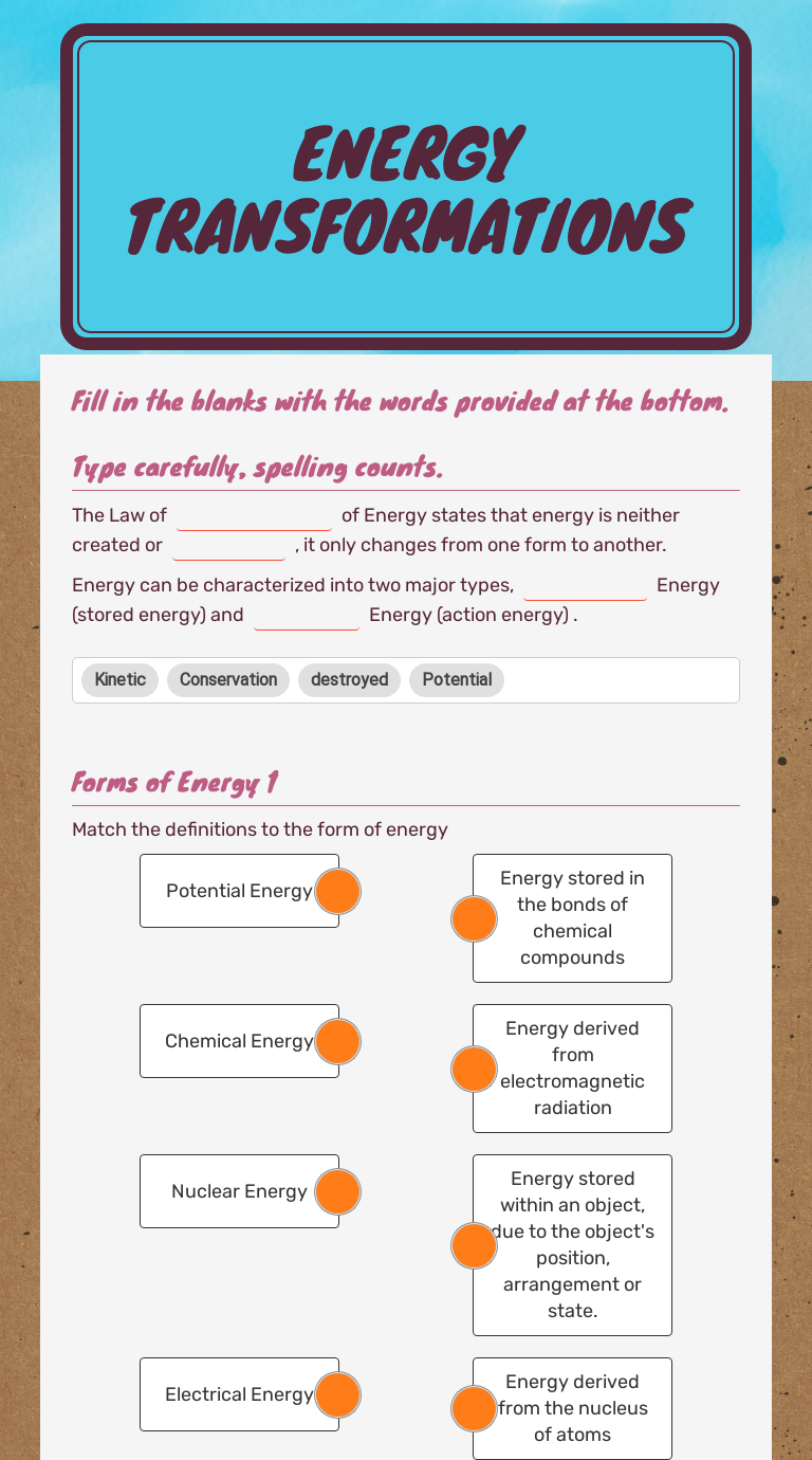 Energy transformation worksheet answers