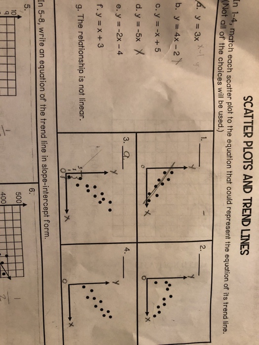 44 scatter plots and trend lines worksheet