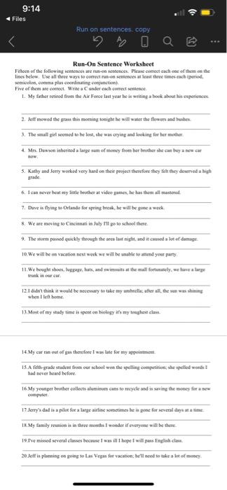 Run on sentence worksheet