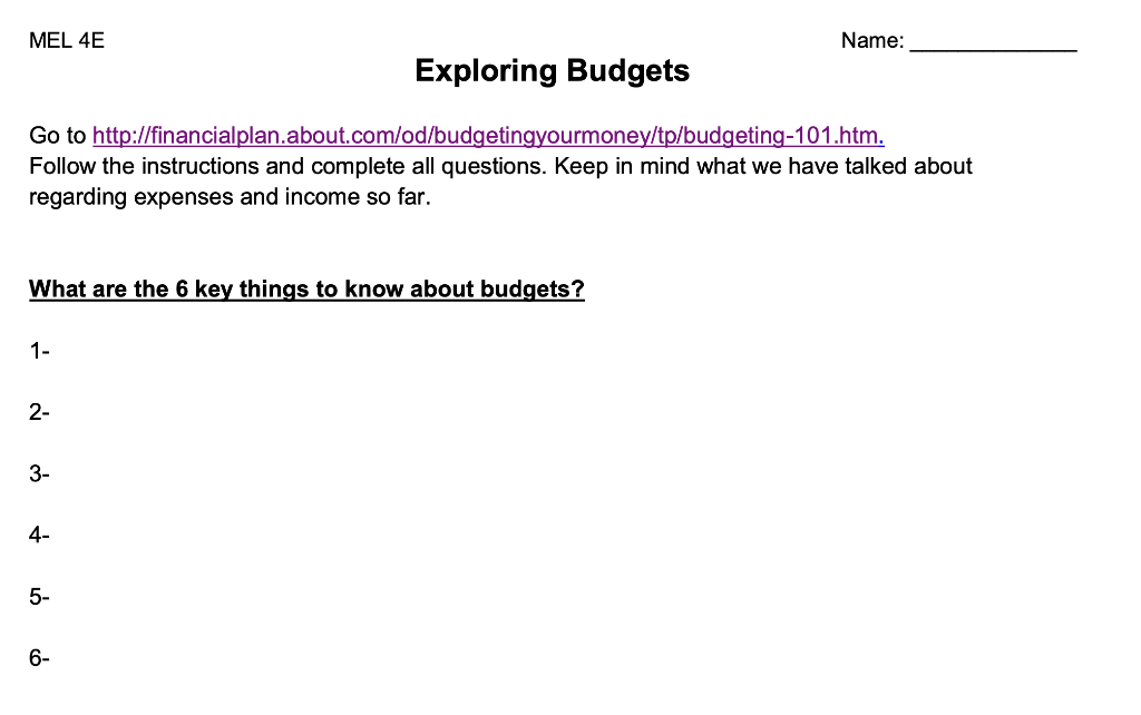 Free Budget Planner Worksheet - NerdWallet WebMay 12, 2022 · A successful budget planner helps you decide how to best spend your money while avoiding or reducing debt. NerdWallet recommends the 50/30/20 budget, which suggests that 50% of your income goes ... PDF ALIGNS WITH LESSON 3 NATIONAL AND COMMON CORE LESSON 1 WORKSHEET 1 ... - ed WORKSHEET 1: "BUDGET BASICS" Jason's Monthly Budget INCOME EXPENSES Allowance $40 Video games $10 Snacks $14 Batting cage $16 Total Income $40 Total Expenses $40 Amy's Monthly Budget INCOME EXPENSES Allowance $40 Art supplies $44 Babysitting $20 Charity $5 Total Expenses $49 a. Amy saves $11 per month and Jason saves nothing. b. › article › financeFree Budget Planner Worksheet - NerdWallet May 12, 2022 · A successful budget planner helps you decide how to best spend your money while avoiding or reducing debt. NerdWallet recommends the 50/30/20 budget, which suggests that 50% of your income goes ... Lesson Plan: Basics in Building a Budget - Scholastic WebWorksheet: Budget Basics printable. 2. Print a copy of the Answer Key: Plan, Save, Succeed! Worksheets printable. 3. Hang a copy of the Plan, Save, Succeed! Classroom Poster printable in your classroom where students can see it. Lesson Directions. Step 1: Ask students how much money a middle school student needs to "live" each month. Record ...