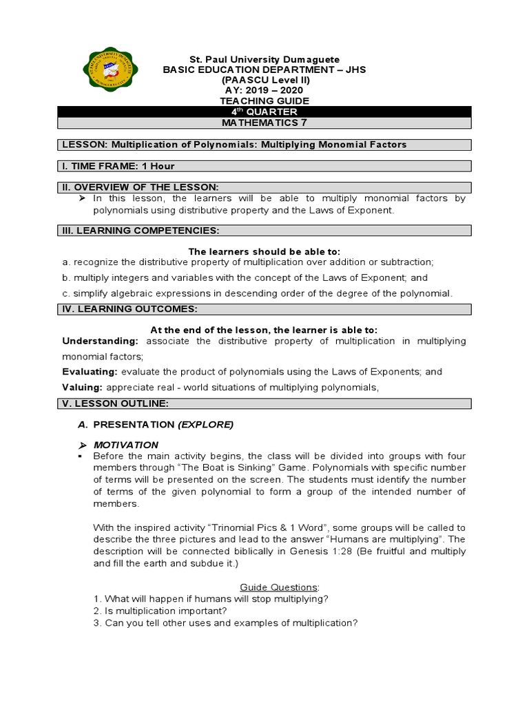 Multiplying Polynomials Worksheets - Tutoringhour.com Multiplication. Buckle up with our free, printable multiplying polynomials worksheets featuring single and multi-variable polynomials multiplied by monomials. Use the distributive property, which means removing the parentheses by multiplying each term of the polynomial by the monomial. Remember to use the product rule of exponents, which states ...