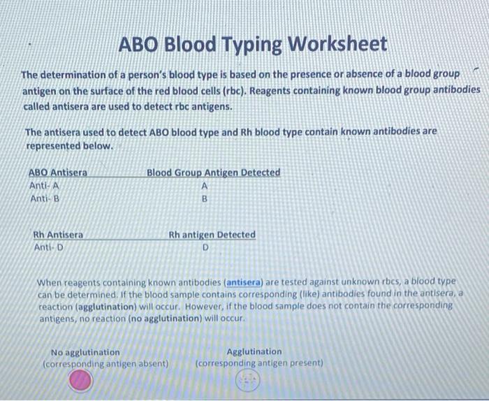Abo blood typing worksheet