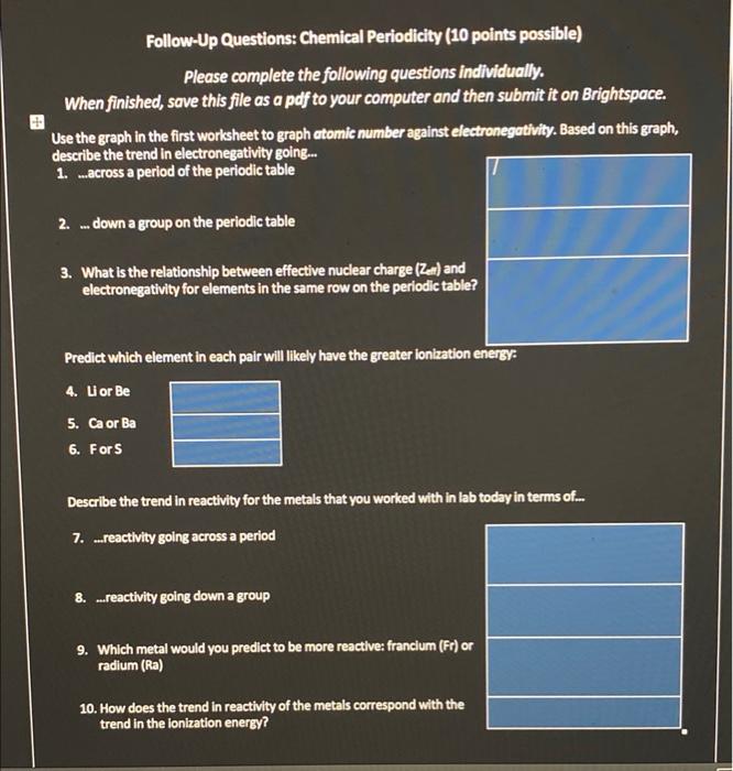 Periodic Trends Worksheet answer key.doc - Course Hero View Periodic Trends Worksheet answer key.doc from CHEM MISC at San Jose State University. Periodic Trends Worksheet Use the periodic table and your knowledge of periodic trends to answer the. Expert Help. Study Resources. ... Explain the relationship between the relative size of an ion to its neutral atom and the charge on the ions . 9 .