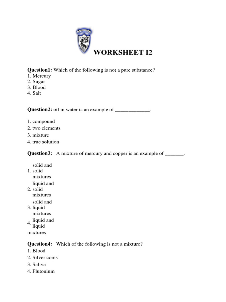 Mixtures: Solution or Suspension worksheet Mixtures: Solution or Suspension worksheet Advanced search English - Español Home About this site Interactive worksheets Make interactive worksheets Make interactive workbooks Help Students access Teachers access Live worksheets > English > Science > Mixtures and Solutions > Mixtures: Solution or Suspension Finish!! Solution Suspension Colloid Worksheet - Worksheet Answers Solutions colloids and suspensions worksheet briefencounters techniques to determine whether the mixture is a true solution a colloid or a suspension. A mixture that scatters light and the particles do not settle out. Source: It is between 1 nm and 100nm in diameter. Large particles settle out on standing. Solutions, Colloids, and Suspensions Worksheet.docx - Name:... Table 3 Test for Chloride Ions Distilled Water NaCl Solution Initial Observatio ns (Step 4) Clear and transparent Clear and transparent Observations After Addition of 0.1 M AgNO 3(Step 6) Clear and transparent Cloudy white precipitate separated from water Name: Nezla Syufriza 2Part B: Dialysis Record observations from the dialysis procedure.