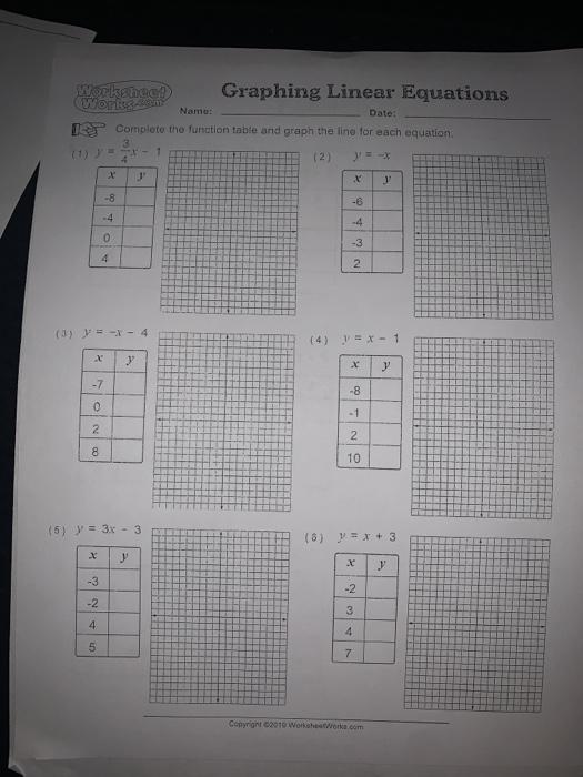 Graphing Linear Equation Worksheets - Math Worksheets 4 Kids Plot the x and y coordinates on the grid and complete the graph. Each worksheet has nine problems graphing linear equation. Graphing Linear Equation: Type 2 Find the missing values of x and y and complete the tables. Plot the ordered pairs and graph the line accordingly. Download these worksheets for ample practice on plotting the graph.