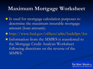 FHA Max Mortgage Worksheet Job Guide - YouTube FHA Max Mortgage Worksheet Job Guide - YouTube 0:00 / 49:12 FHA Max Mortgage Worksheet Job Guide 63 views Oct 28, 2021 Learn how to complete a Max Mortgage Worksheet for an FHA...